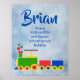 Brian Name Poster on blue watercolor background, with a colourful toy train and customizable text. The adjectives start with each letter of the chosen name. You can customize the adjectives for this name or choose another name and corresponding adjectives. Or you can contact me to customize a poster with your name of choice. NOTE: when customizing, the top name is written twice (once in blue and once with a lighter "shadow") to make it stand out.