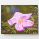 A photograph of a pink five petal rose blossom in a garden.
