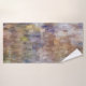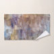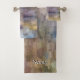 A customizable bathroom set with your name featuring a brick abstract pastel painting with a combination of fall and winter shades of brown, blue, white, green and yellow.