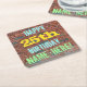 This fun birthday-themed coaster design features a message like "HAPPY 25th BIRTHDAY, NAME-HERE!", where the name can be personalized. The background features a representation of a brick wall consisting of some reddish-brown coloured bricks. The customizable message text features colours like blue, yellow, and green, and it has an appearance inspired by that of painted graffiti. Coasters like these might be useful as practical decorations at a birthday party for somebody who is celebrating their twenty fifth birthday. [~Z0000288]