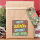 This fun birthday-themed sticker design features a message like "HAPPY 25th BIRTHDAY, NAME-HERE!", where the name can be personalized. The background features a representation of a brick wall consisting of some reddish-brown coloured bricks. The customizable message text features colours like blue, yellow, and green, and it has an appearance inspired by that of painted graffiti. Stickers like these could perhaps be given as a birthday gift, or perhaps be used as decorations at a birthday party for somebody who is celebrating their twenty fifth birthday. [~Z0000273]