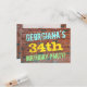 This fun birthday party invitation design features a message like "GEORGIANA’S 34th BIRTHDAY PARTY!", where the name can be personalized, on the front. The background features a representation of a brick wall consisting of some reddish-brown coloured bricks. The customizable message text on the front features colours like blue, yellow, and green, and it has an appearance inspired by that of painted graffiti. The back features a customizable message that could include relevant details about the birthday party. Birthday party invitations like this might be a fun way to invite family and friends to a birthday party being held for somebody who is celebrating their thirty fourth birthday. [~Z0000287]
