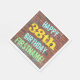 This fun birthday-themed paper napkin design features a message like "HAPPY 38th BIRTHDAY, FIRSTNAME!", where the name can be personalized. The background features a representation of a brick wall consisting of some reddish-brown coloured bricks. The customizable message text features colours like blue, yellow, and green, and it has an appearance inspired by that of painted graffiti. Napkins like these could perhaps be used at a birthday party for somebody who is celebrating their thirty eighth birthday. [~Z0000271]