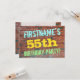 This fun birthday party invitation design features a message like "FIRSTNAME’S 55th BIRTHDAY PARTY!", where the name can be personalized, on the front. The background features a representation of a brick wall consisting of some reddish-brown coloured bricks. The customizable message text on the front features colours like blue, yellow, and green, and it has an appearance inspired by that of painted graffiti. The back features a customizable message that could include relevant details about the birthday party. Birthday party invitations like this might be a fun way to invite family and friends to a birthday party being held for somebody who is celebrating their fifty fifth birthday. [~Z0000287]