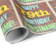 This fun birthday-themed wrapping paper design features a message like "HAPPY 79th BIRTHDAY, FIRSTNAME!", where the name can be personalized. The background features a representation of a brick wall consisting of some reddish-brown coloured bricks. The customizable message text features colours like blue, yellow, and green, and it has an appearance inspired by that of painted graffiti. Wrapping paper like this could perhaps be used when wrapping birthday gifts being given to somebody who is celebrating their seventy ninth birthday. [~Z0000274]