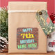This fun birthday-themed sticker design features a message like "HAPPY 7th BIRTHDAY, NAME-HERE!", where the name can be personalized. The background features a representation of a brick wall consisting of some reddish-brown coloured bricks. The customizable message text features colours like blue, yellow, and green, and it has an appearance inspired by that of painted graffiti. Stickers like these could perhaps be given as a birthday gift, or perhaps be used as decorations at a birthday party for somebody who is celebrating their seventh birthday. [~Z0000273]