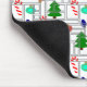 This mouse pad has a geometric design of Christmas trees, candy canes, lights, and ornaments with grey rectangle outlines on top. Like the design but want a different colour? Message me.