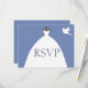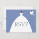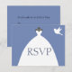 RSVP with this lovely bridal gown blue invitation. Featuring a white wedding dress with a dove at the top right hand corner. Purchase yours today!