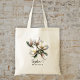 Personalized, floral tote bags for bridesmaids. Pretty white magnolia flowers decorate one side. Create a bag for all the ladies by adding their name and title (maid of honour, flower girl, junior bridesmaid) beneath the flowers. Off-white cloth totes have optional handle colours and are perfect for a southern wedding.
