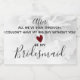 Sweet Bridal Party Proposal |Modern Wedding Party sparkling wine Label on a Soft white floral background centred with a cute red heart. Write your own cute little message or use ours. Can be customized for any wedding party role.
