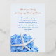 Wedding thank you cards with foil text and blue hydrangea with starfish design. The sample wording is to thank members of the bridal party. Personalize the message with each member’s name and their title. This text will be printed in the foil colour of your choice, with rose gold shown. The blue text is for the message and signature. This elegant beach-themed design matches items in the Seaside Garden design line.