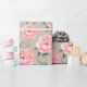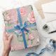 Beautiful gift wrap on a blush background with an array of Pink Peonies.