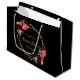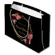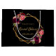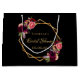A trendy and stylish Bohemian boho style for a bridal shower. Decorated with watercolored roses in burgundy and pink. Elegant black coloured background. A faux gold geometric frame. Templates for the bride's name and a date. With the text: Bridal Shower written with a hand lettered style script, faux gold coloured letters.