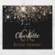 For an elegant Bridal Shower. A chic black background with faux gold glitter spots. Personalize and add a name and monogram initials. The name is written in a golden colour with a modern hand lettered style script. White and golden letters.