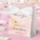 A large abstract watercolored blush pink rose as background decorated with and a happy smiling bee and drips. With the text: Bridal Shower and Thank You written with a modern black coloured hand lettered style script. Personalize and the bride to bee name and a date.