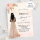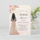 A rose gold, blush pink gradient background. A bride, pink roses, pampas grass. Personalize and add a name and party details.