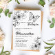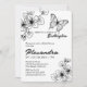 Black lineart invitation features florals and a butterfly - the perfect invitation for a garden bridal shower or wedding engagement party! Modern design, rounded corners. Pair it coloured envelopes for a layered look!