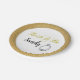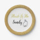 This gold glittery bride-to-be paper plate features a silver engagement ring plus the bride's name. A chic gold glitter design that is perfect for a modern bridal shower. Shown is a plate for appetizers or desert. A larger entree size or bowl is also available. Choose the paper party plate that is right for your needs.