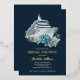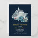 Unique cruise ship trip bridal shower real gold foil invitation. Personalize it with the future bride's name and the party details including the dates, cruise line, departure port, RSVP information or your bridesmaids, etc. Design with a watercolor boat and beautiful flowers on a navy blue background.