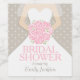 Elegant bridal dress with posy of pink stylized roses floral and grey heart rain bridal shower wine labels. Edit these labels with your own honouring bride to be's name. Ideal for use at a bridal shower party and matches the dress bouquet wedding stationary set. Unique design and graphic art by Sarah Trett. © Art and design by Sarah Trett. www.sarahtrett.com for www.mylittleeden.com