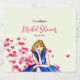 Designed based on my illustration of a beautiful blonde hair lady wearing stunning classic elegant dark royal blue cocktail dress and scattered pink hearts on the background. Perfect design for bridal shower or birthday celebration. Customize it at my store for a personalized design.