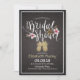 Vintage Bridal Shower Invitation Template - Elegant Faux Gold Foil Pineapple Couple on Black Floral Damask Linen Background.