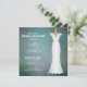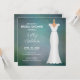 Bridal Shower Elegant Soft Green Invitation designed with a Bridal Gown sketch on a soft green background with white text. The invitation text includes: The Bride's Name, Shower Date, Time, Location and Host and RSVP Details. The reverse side is a matching soft green background. To personalize, simply insert your details into our easy template, replacing the sample text.