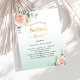 Green and white gradient background. Decorated with a rose gold and blush pink florals, rose flowers and green watercolored eucalyptus leaves, sprigs, greenery and faux gold sprigs. Personalize and add the name of the bride to be and party details. Black and golden coloured letters.