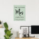 Modern and chic "The Future Mrs" personalized sage green welcome poster for your bridal shower. "Mrs" is written in a large elegant script, and you can personalize with your future married name, first name and shower date.