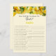This game features a gorgeous lemon-themed design, with a top border of whole lemons, lemon wedges, lemon slices, and greenery against a mostly white background. The bride's name is listed in a pretty yellow font under the question "How Well Do You Know The Bride?", matching the lemon slice design perfectly.
