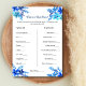 A fun Bridal shower game- What is in your purse. The age old fun game for all Bridal showers! Order as many copies as you have guests. Card is 5x7 inches.