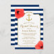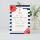 Bridal Shower Nautical Anchor Tropical Floral Navy Blue Stripes Invitations.