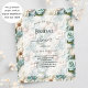 Dusty green and white flowers as background. Personalize and add a name and party details.