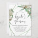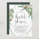 Eucalyptus Greenery and White Magnolia Floral Botanical Watercolor Spring Wedding Bridal Shower Invitations on white background - includes beautiful and elegant script typography with modern botanical leaves and greenery for the special Bride to Be celebration.