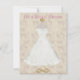 Elegant Bridal Shower Invitation done in a soft beige and pink floral background, with graphics of a white wedding gown on a golden stand. Customize all the text areas on the back and front of this great card to suit your needs. Change font style, size, and colours too if you want.