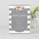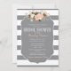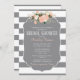 Bridal Shower Invitation, grey stripe peach floral Invitation