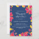 This fun and elegant petite (4.5 x 6.25") bridal shower invitation features colourful tropical style illustrated flowers along the border. Perfect for a luau, tropical island, or Hawaiian theme wedding shower event. The text can be customized for your special occasion leading up to the wedding.