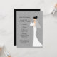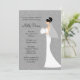 Invite the guests for a bridal shower in style with this modern and elegant Bridal Shower Invitation. Features a silhouette of a bride in a beautiful wedding dress with veil and bouquet. This black, white and silver design is an elegant way to invite guests to your shower. MATCHING ENVELOPES are available for purchase below