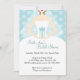Bridal Shower Invitations with Bride & gift in blue and polka dots