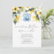Celebrate in style with these exclusive bridal invitations, featuring a blue monogram crest and a yellow watercolor hibiscus flower border. The phrase "Something Blue Before I Do" is elegantly set in calligraphy script, making these invitations perfect for a unique floral bridal shower theme.