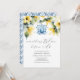 Designed for a charming brunch and bubbly gathering, this blue and yellow design adds sophistication to any celebration. The back features a complimentary ornate blue pattern, adding a timeless touch.