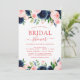 Bridal Shower Navy Blue Blush Pink Floral Invitation