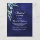 Bridal Shower navy blue greenery elegant Invitation Postcard