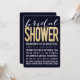 navy dark blue and gold coloured modern typography yet with a gorgeous soft vintage look and feel. Add your own text to the template to create this popular, quality, professional, printed glimmering bridal shower invitation flat card. stunning glimmering gold typography.