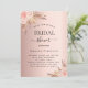 For a modern boho style bridal shower. A rose gold faux metallic looking background. Decorated with rose gold and pink florals, roses and pampas grass. Personalize and add a name and party details.
