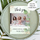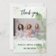 A modern Bridal Shower Thank You photo card. A waterecolored green background, decorated with a eucalyptus sprig. Personalize and add your photo and thank you note.