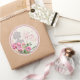 Personalize this pretty bridal shower sticker as all text is easily updated prior to placing into your shopping cart. It features the silhouette of a bride with pink tulips. Utilize these on envelopes, shower favours, and so much more.