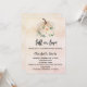 A rose gold and blush pink gradient background, decorated with a cream coloured pumpkin and flowers. Personalize and add the name and party details. Text: fall in love