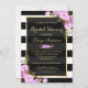 Bridal Shower Purple Floral Gold Frame Stripes Invitation
