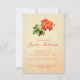 Double-sided simple fine art tea rose bud on a rustic background wedding bridal shower invitation. Part of tea rose wedding stationary set. Pretty red, orange and yellow rose shades. Edit this wedding programme with your own name, dates, and wording . Simple rustic yet modern and romantic wedding bridal shower invitation. Design and watercolor painting by Sarah Trett.